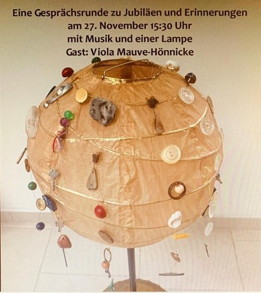 Im November erwartet uns ein weiterer Höhepunkt: Viola Mauve-Hönnicke wird uns mit einem kleinen Konzert erfreuen und anschließend zu einer Gesprächsrunde zu Jubiläen & Erinnerungen einladen. Dabei möchten wir Erinnerungen teilen, die mit besonderen Lebensabschnitten oder prägenden Ereignissen verbunden sind.