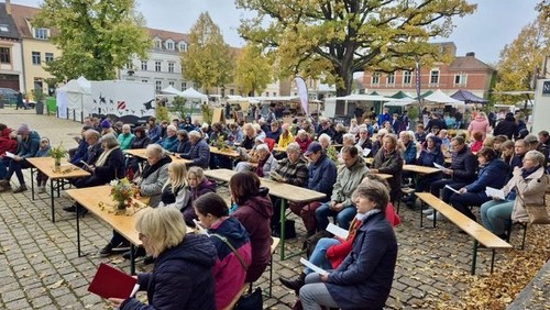 Im Rahmen des Festivals „FestEssen“ feiern an diesem Oktobersonntag zahlreiche Besucherinnen und Besucher auf dem Marktplatz in Werder einen ökumenischen Familiengottesdienst unter der Leitung von Linda Jünger (evangelisch) und Claudia Sobotta (katholisch).