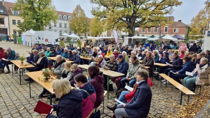 So wird dieser Gottesdienst auf dem Werderaner Marktplatz zu einem „FestEssen“ des Teilens, der Dankbarkeit und der Hoffnung.