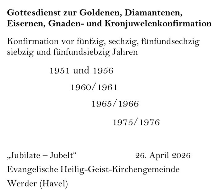 Allen Jubilar*innen gratulieren wir sehr herzlich zur Jubelkonfirmation!